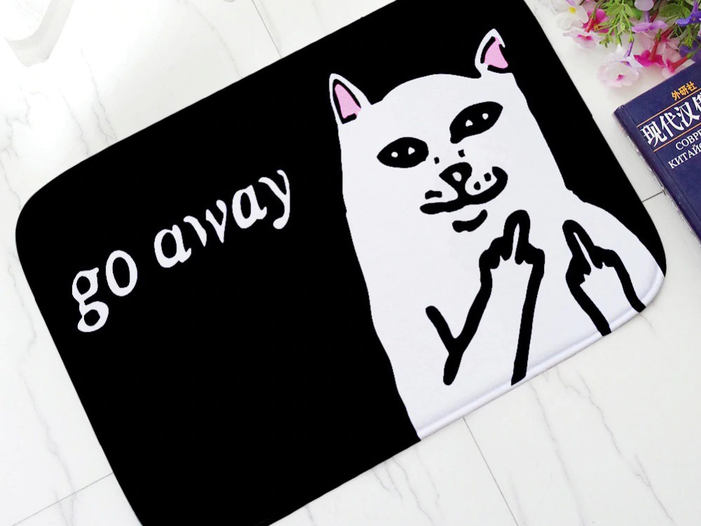 Коврик нескользящий и имеет рисунок в виде популярного кота Lord Nermal. Это кот очень популярен в Америке. Так что коврик достаточно оригинальный и в тренде. Этого кота придумали дизайнера модного магазина RIPNDIP.