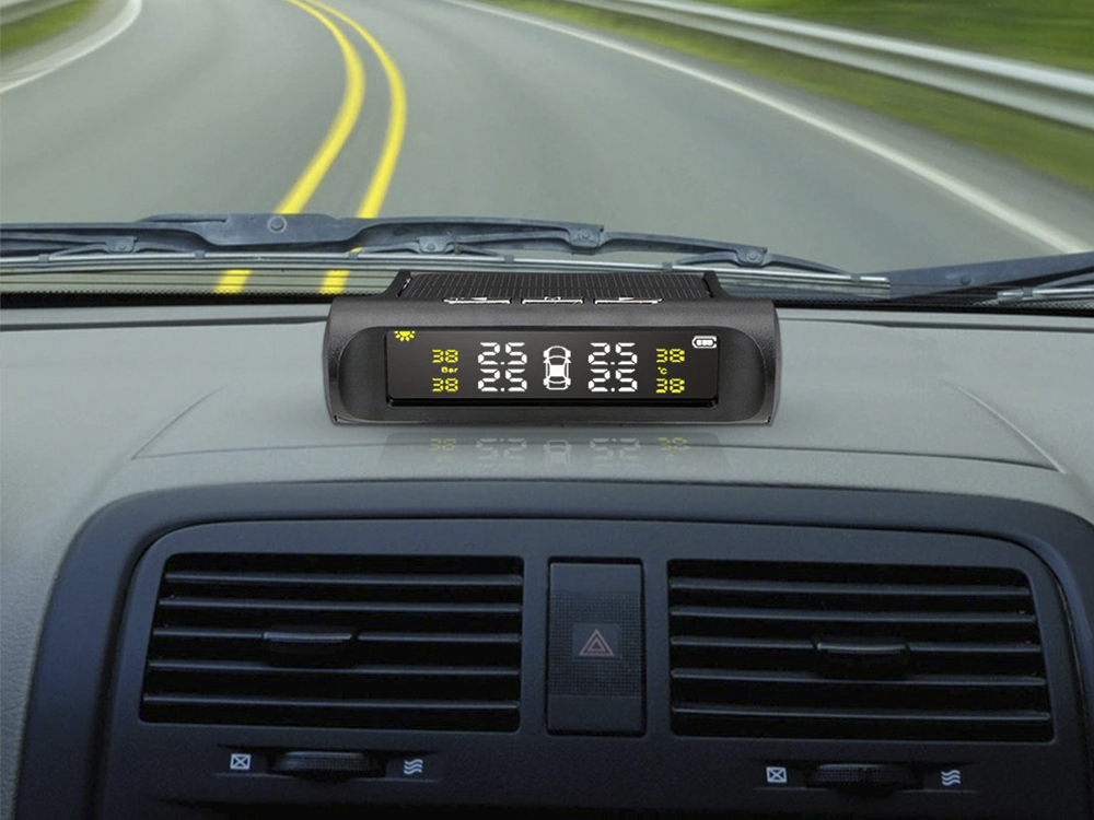 Солнечная беспроводная автомобильная система контроля давления в шинах с 4 датчиками (TPMS) Черный