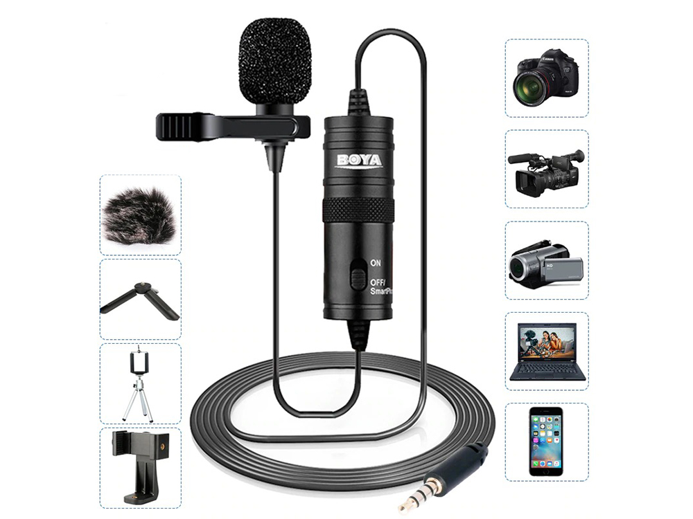 Мікрофон петлічний Boya BY M1 для смартфона камери - це мікрофон-петлички, який ідеально підходить для роботи з камерою, DSLR, ПК, смартфоном і т.д.