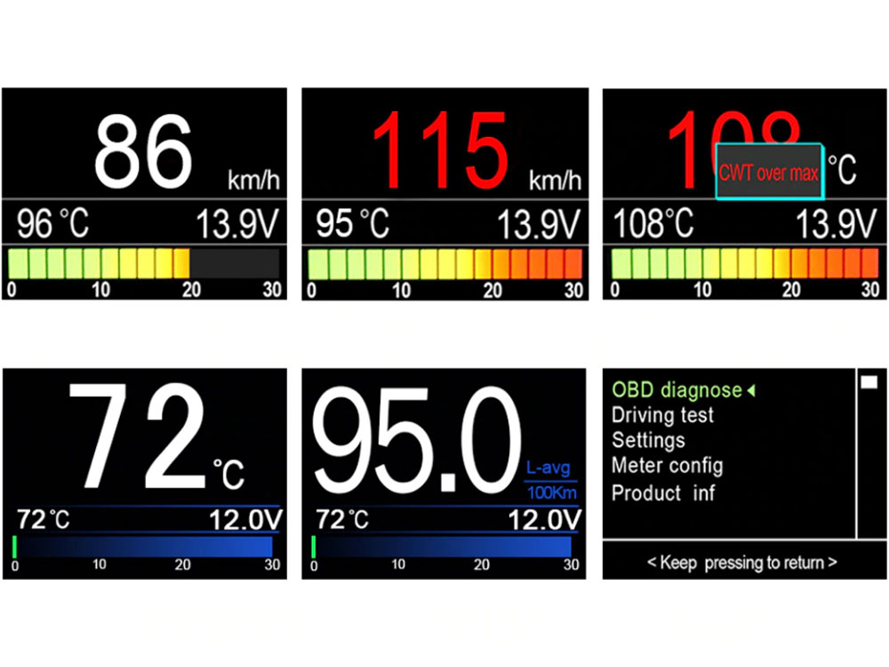 Автомобильный бортовой компьютер A202S OBDII совместим с различными типами двигателей, подходит для автомобилей не оснащённых тахометром, датчиком температуры двигателя. С его помощью есть возможность следить за расходом топлива.
