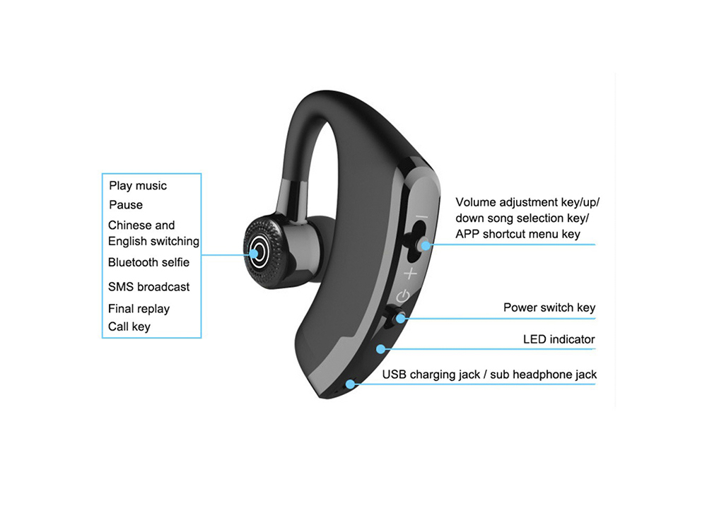 - Гарнитура Bluetooth V9 для Android iPhone Samsung Huawei LG HTC
