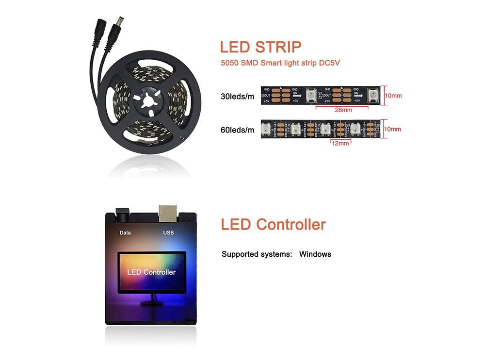 Динамическая адаптивная эмбиент RGB подсветка для монитора или телевизора 3 метра