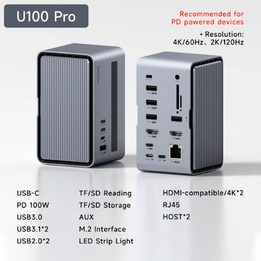 Универсальная док-станция Hagibis U100 Pro 100W для Macbook Pro: это качественный, продуманный и грамотно реализованный продукт который будет полезен как для обычного пользователя, так и для медийного человека с большим количеством оборудования на рабочем месте, не обойдет стороной его насыщенная функциональность так же программистов, и разработчиков.