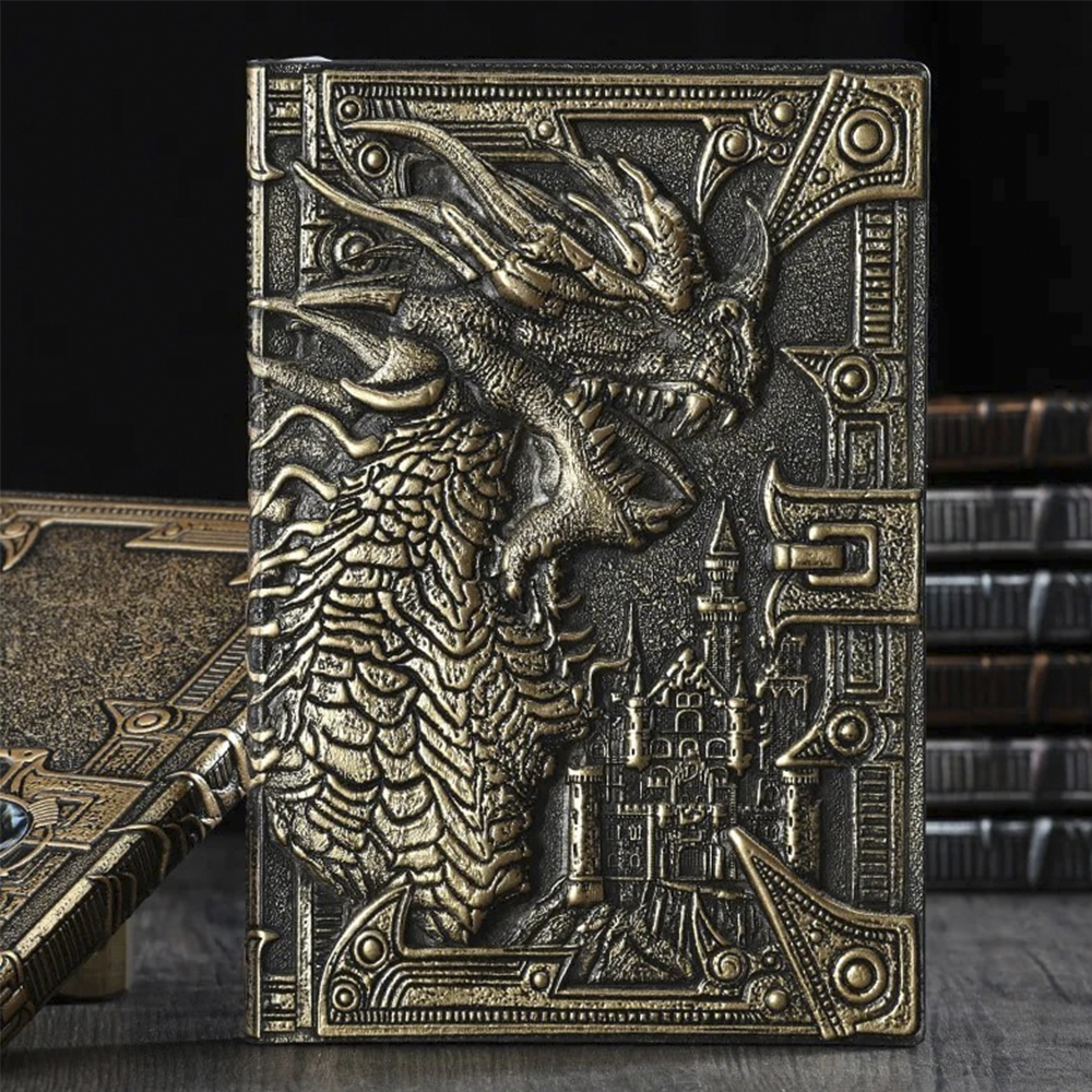 Обложка украшена 3D тиснением в виде Дракона.