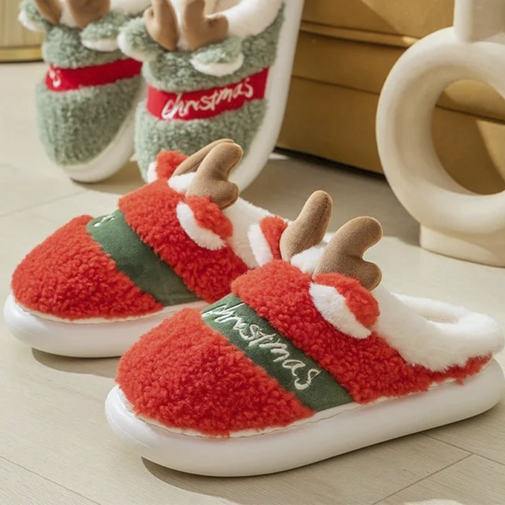 Тапочки с принтом Олень Новый год теплые махровые - очень теплые и оригинальные тапочки на тему Нового Года.