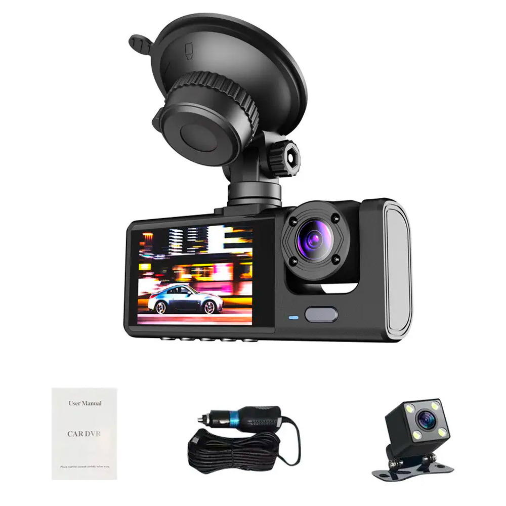 Автомобильный видеорегистратор FHD 1080P с 3-мя камерами - автомобильный видеорегистратор DashCam FHD 1080P с тремя камерами обеспечивает всестороннюю запись во время вождения. Благодаря маленькому и изысканному корпусу, этот видеорегистратор легко устанавливается в автомобиле, не мешая обзору. Устройство оснащено передней камерой с разрешением 1080P, внутренней и задней камерами с разрешением 720P, позволяя одновременно записывать события спереди, сзади и внутри машины.