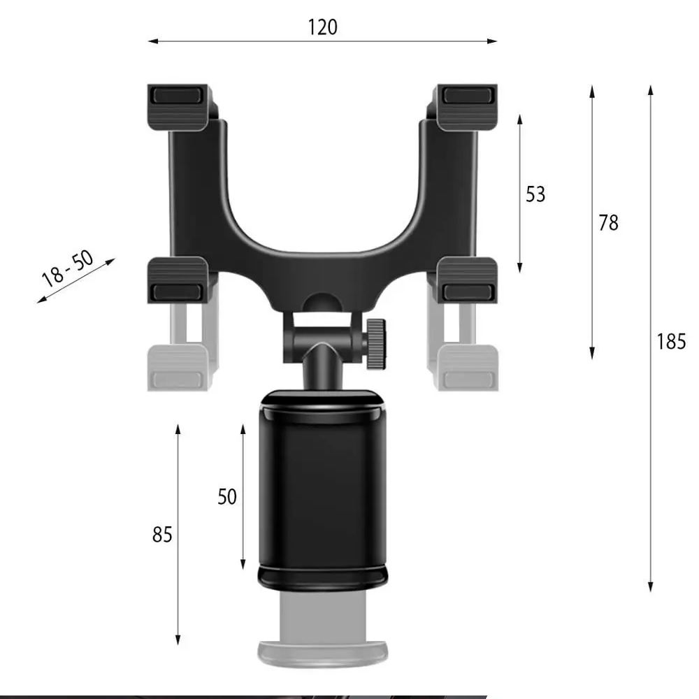 Автомобильный держатель имеет возможность вращения на 360 градусов, что позволяет установить телефон в любом удобном положении. Поворотный шарнир в основании держателя позволяет регулировать угол наклона устройства для оптимального использования. Держатель подходит для телефонов и навигаторов шириной от 60 до 100 мм (диагональ экрана от 4 до 6,5 дюймов) и совместим практически со всеми размерами автомобильных зеркал заднего вида.