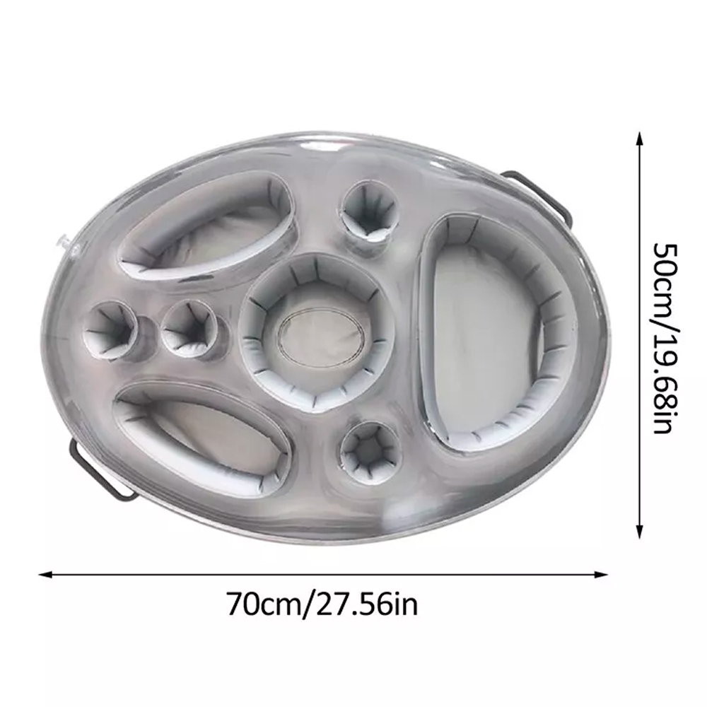 Поднос надувной для напитков и закусок - этот надувной поднос с 8 отверстиями идеально подходит для летних вечеринок, отдыха на пляже или в бассейне. Сделанный из высококачественного экологически чистого ПВХ, он отличается долговечностью и прочностью. Поднос имеет встроенные держатели для банок и бутылок, а также места для закусок и еды, что позволяет безопасно хранить ваши напитки и еду на воде. Удобный клапан позволяет быстро надувать и сдувать поднос, предотвращая утечку воздуха. Этот поднос станет отличным подарком для семьи и друзей, обеспечивая комфорт и удобство на любой вечеринке или отдыхе.