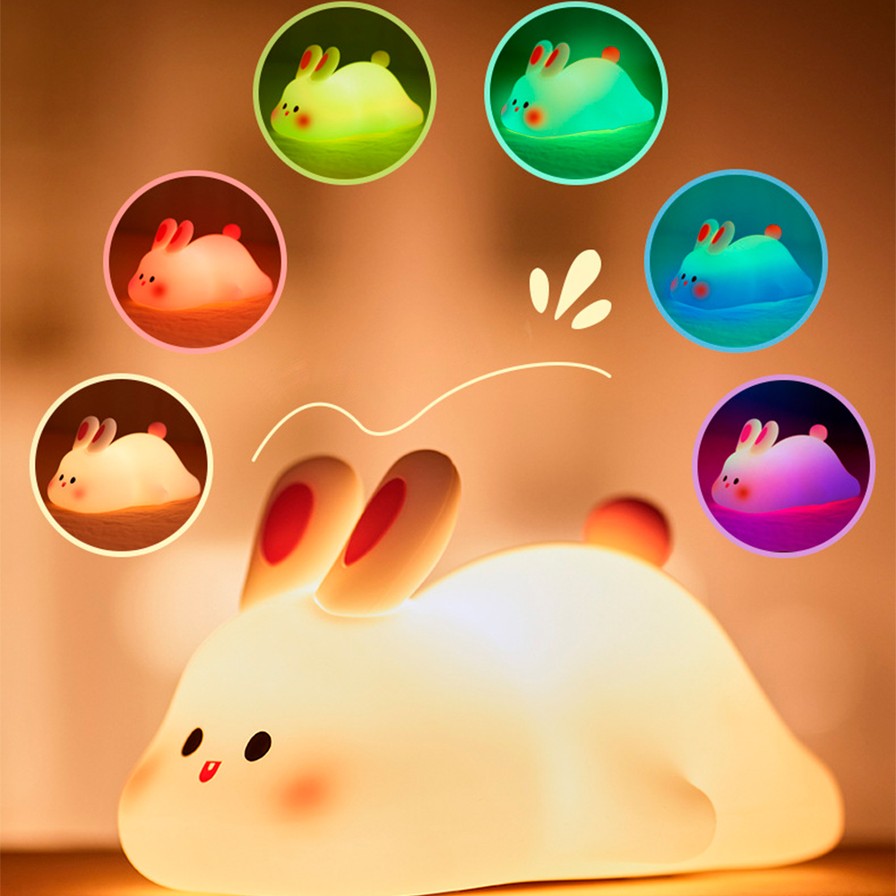 Ночник детский силиконовый зайчик с таймером - ночник обладает мягким корпусом, изготовленным из безопасного гипоаллергенного силикона, внутри которого находится электронный модуль с встроенными светодиодами.