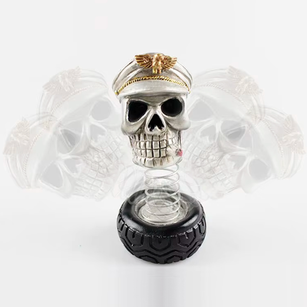 Игрушка болтающийся череп для приборной панели - это оригинальное украшение для автомобиля в виде черепа на пружине, которое добавит уникальности вашему транспортному средству. Череп выполнен из прочной смолы и имеет эффектное оформление в виде капитана с золотой эмблемой на шапке. Встроенная пружина обеспечивает динамическое движение головы во время движения автомобиля, что привносит в интерьер авто нотку юмора и оригинальности.