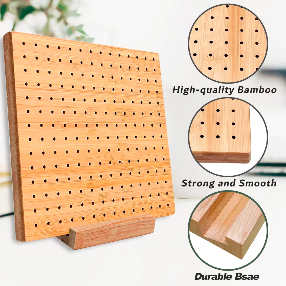 Доска для вязания крючком из бамбука 20 х 20 - это блокировочная доска для вязания крючком, изготовленная из высококачественного бамбука, идеально подходит для создания ровных и аккуратных вязанных квадратов. Доска обладает гладкой поверхностью, благодаря полировке, что предотвращает появление царапин. С помощью деревянной подставки доска легко устанавливается на стол, обеспечивая удобство в работе. Размер доски составляет 20.07 х 20.07 см, что делает её подходящей для разнообразных проектов. Диаметр отверстий — 3 мм, а длина металлических спиц — 10.16 см, что позволяет надёжно фиксировать ткань во время блокировки. Идеальный выбор для тех, кто увлекается вязанием и хочет добиться профессиональных результатов.