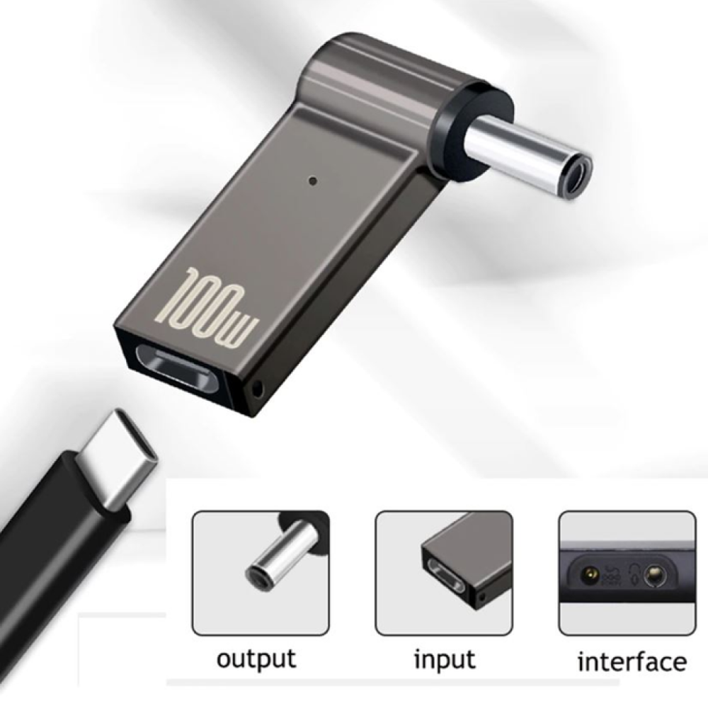 - USB Type-C 100W адаптер питания DC 5.5×1.7 – 1 шт