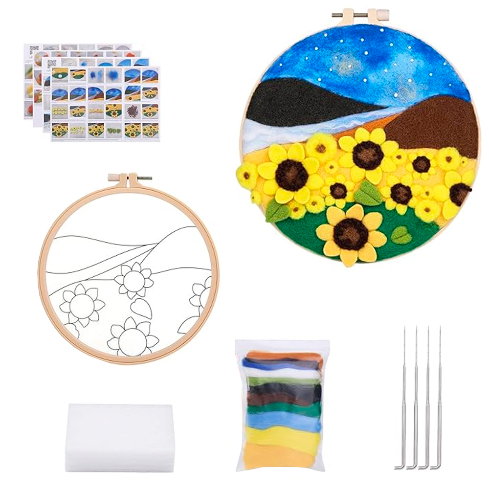 Набор KRABALL для валяния из шерсти картина Подсолнухи - шерстяные картины представляют собой уникальное искусство, восхищающее своей оригинальностью и вариативностью. Это творчество, способное внести тепло и уют в любое пространство, превращаясь в изысканное дополнение к декору вашего дома или в неповторимый подарок для дорогих людей. Создание этих картин напоминает магию акварели, где вместо привычных красок и кистей используется шерсть, позволяя мастеру раскрыть свои творческие способности в полной мере. Результаты поражают своей красотой и нежностью, напоминая акварельные полотна, но с уникальным мягким оттенком, доступным только этому виду искусства.