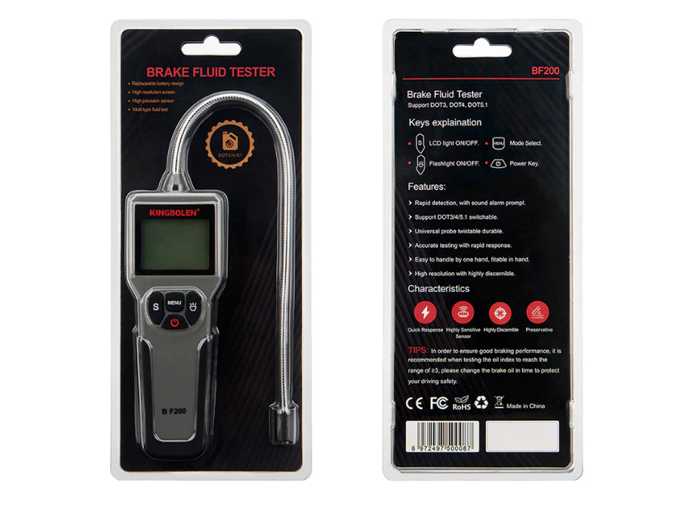 Тестер тормозной жидкости KINGBOLEN 12V BF200 - тестер тормозной жидкости 12V профессиональный (DOT3, DOT4,