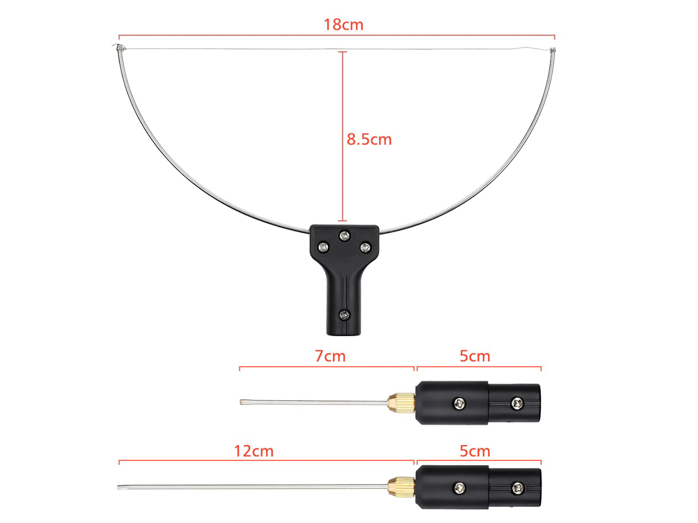 В комплекте идет лезвие 18 см, а также 2 ножа 10 и 5 см и держатель.