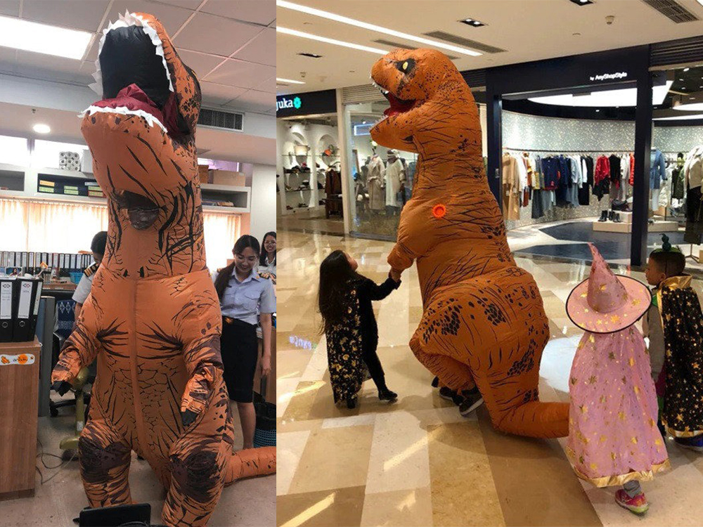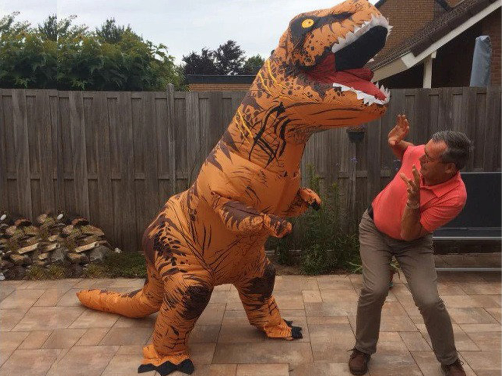 Надувной костюм Тираннозавра T-Rex - оригинальный костюм динозавра, который пригодится на детский праздник, ну или просто для прикола.