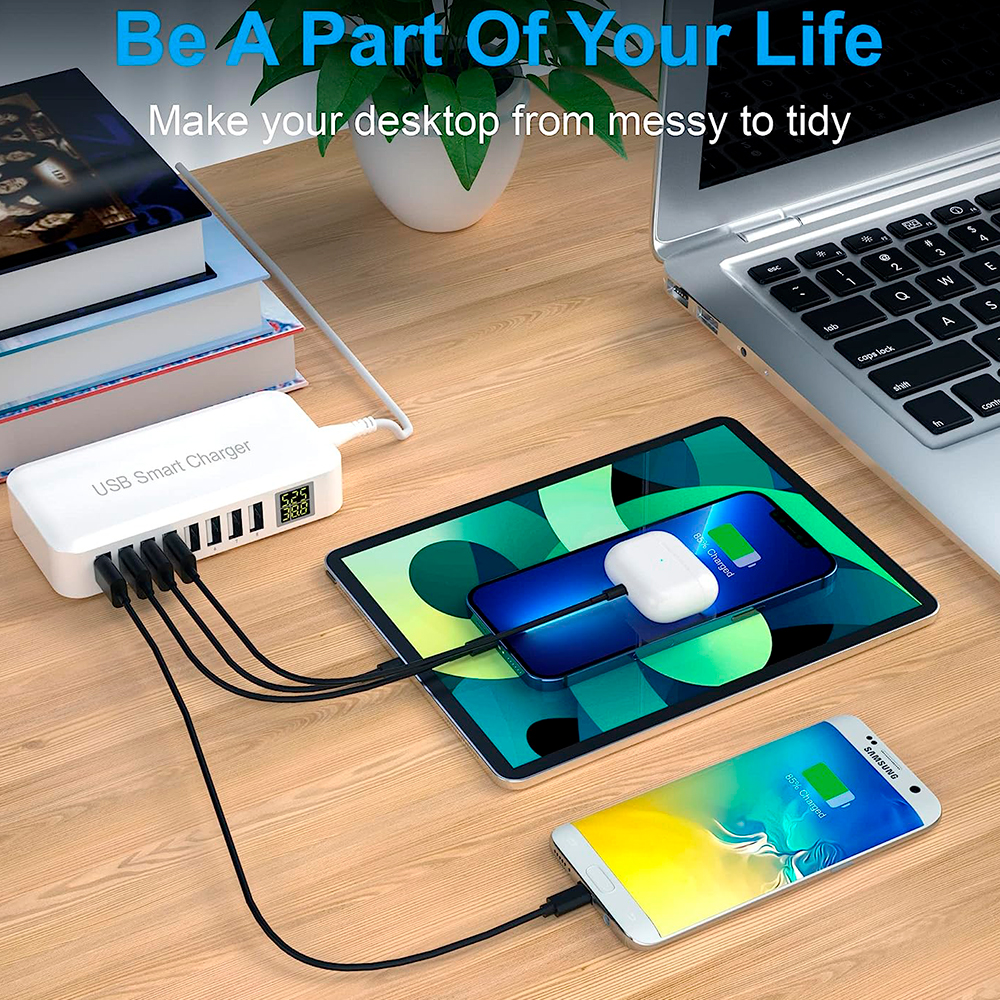 Зарядное устройство 40 Вт 8-портов USB Smart Super Fast с LCD дисплеем - представляет собой многофункциональное решение для одновременной зарядки до восьми устройств. Это мощное зарядное устройство обладает общей выходной мощностью 40 Вт и током 8 А, гарантируя эффективную и быструю зарядку для современных устройств. Каждый порт способен выдавать до 2,4 А, что идеально подходит для быстрой зарядки смартфонов, планшетов, и других USB устройств.