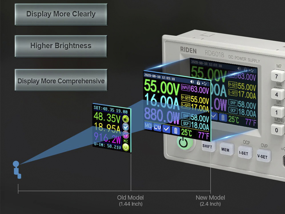 Преобразователь DC-DC RD6018W для лабораторного блока питания - это DC-DC преобразователь с широким диапазоном регулировки (0-60В), он предназначен для сборки лабораторного блока питания, основными компонентами являются DC-DC преобразователь (представлен в данном лоте), блок питания AC-DC с мощьностью 800Вт и напряжением 65В (не входит в комплект) а также корпус, который позволяет собрать все компоненты в единое целое (не входит в комплект). Также преобразователь может быть использован как отдельное устройство.