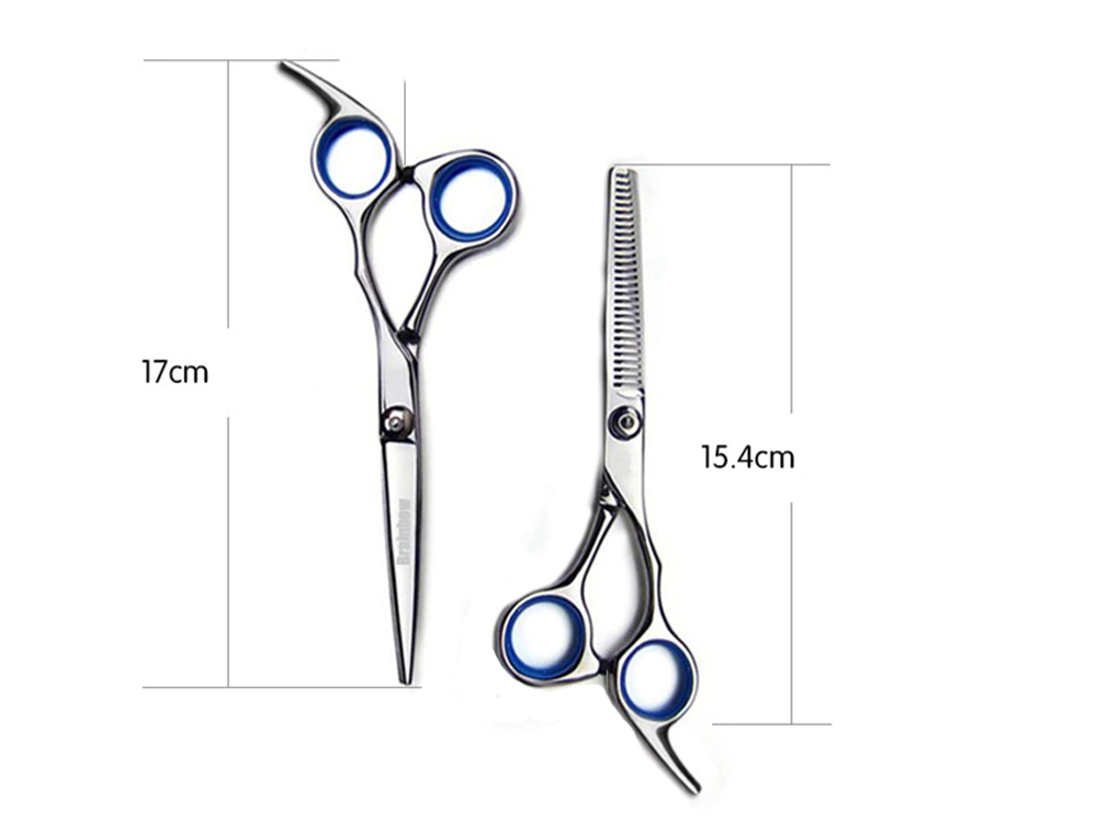 Довжина ножиць 17 см, довжина філірувальних ножиць 15,4 см.