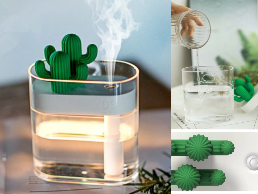 Виготовлений зволожувач з якісного пластику, а сам кактус з силікону.