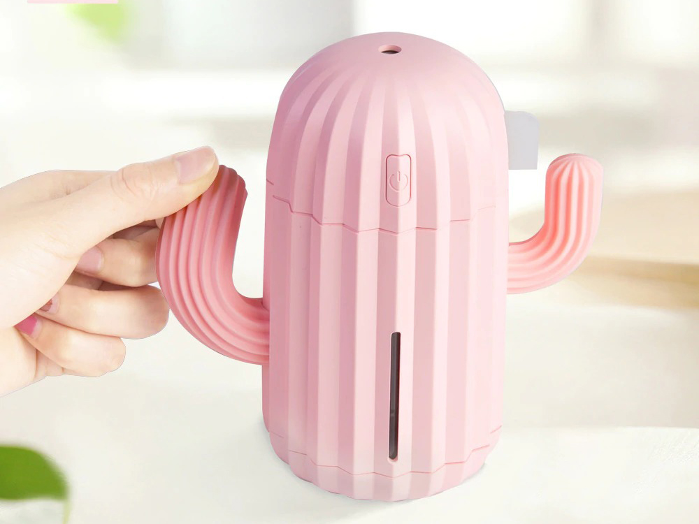 Зволожувач повітря має дуже кумедний і привабливий дизайн. Ріжки кактуса гнуться.
