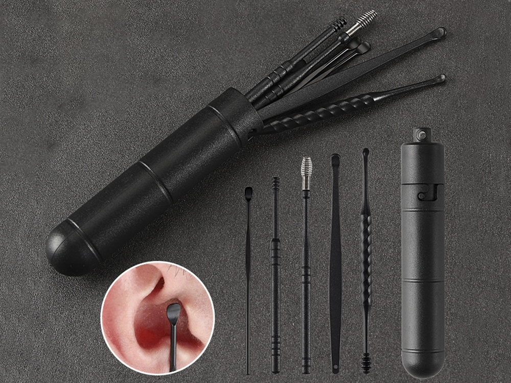-25%Набір інструментів для чистки вух і видалення сірки 7 штук c боксом для зберігання Чорний