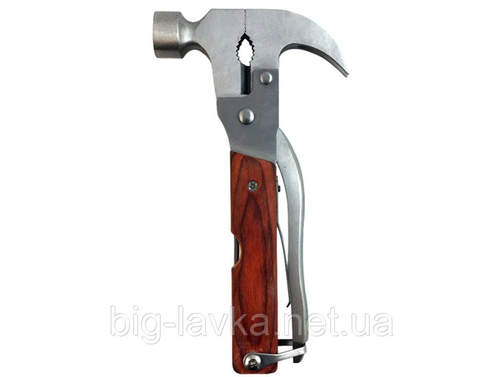 - Функціонал: Ніж, молоток, звичайний молоток, викрутка, пилка по дереву, пилка по металу, бокорізи, плоскогубці, гайкові ключі, відкривалка, напилок і т.д.;
