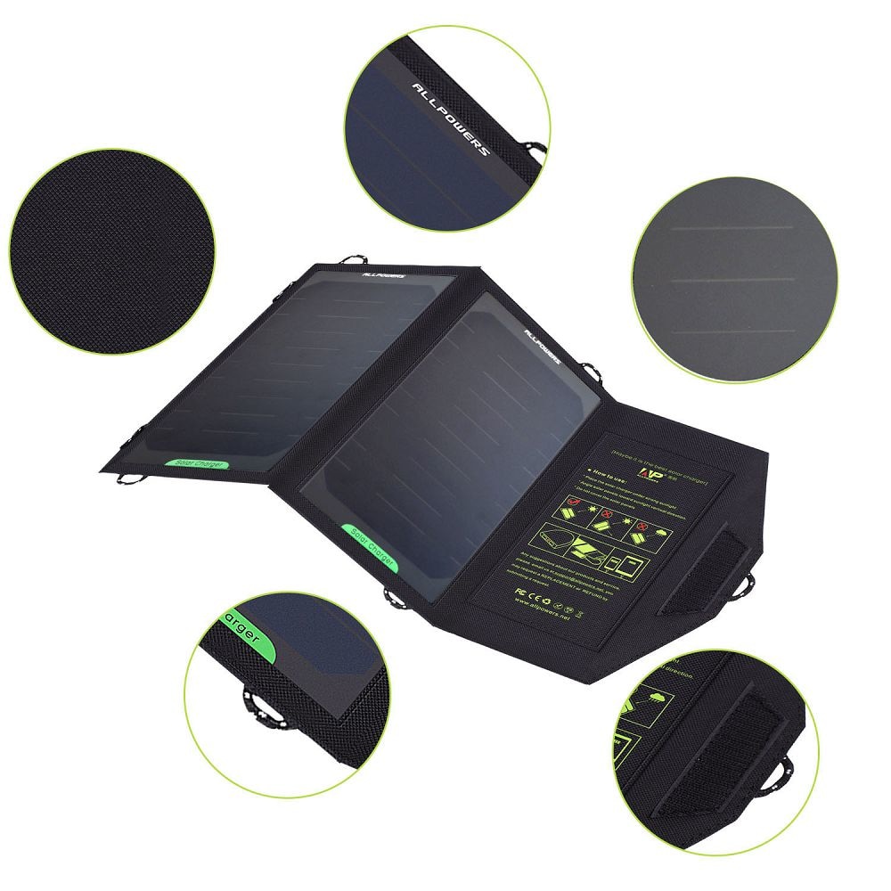 Зарядний пристрій на сонячних панелях для мобільного Allpowers AP-SP5V10W - це пристрій просто необхідно в тривалих туристичних походах або в інших випадках де немає можливості зарядки мобільного від електромережі.
