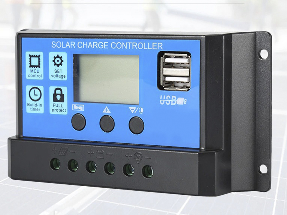 Контролер ШИМ заряду батареї для сонячної панелі 40А 12В/24В з дисплеєм та USB - це контролер, який керує зарядом буферної акумуляторної батареї, що працює в системі із сонячною панеллю. Даний контролер оснащений великим РК-екраном і має параметри, що настроюються.