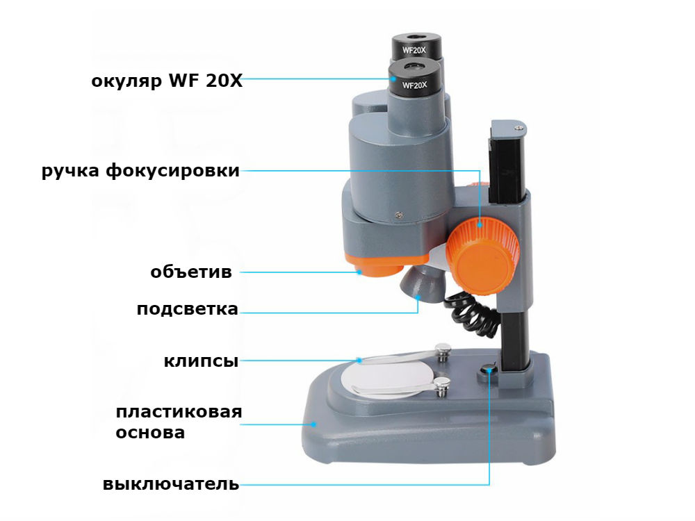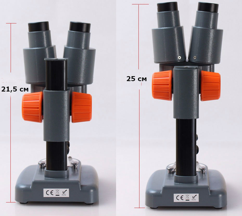 Мікроскоп має два окуляра зі збільшенням по 20Х.