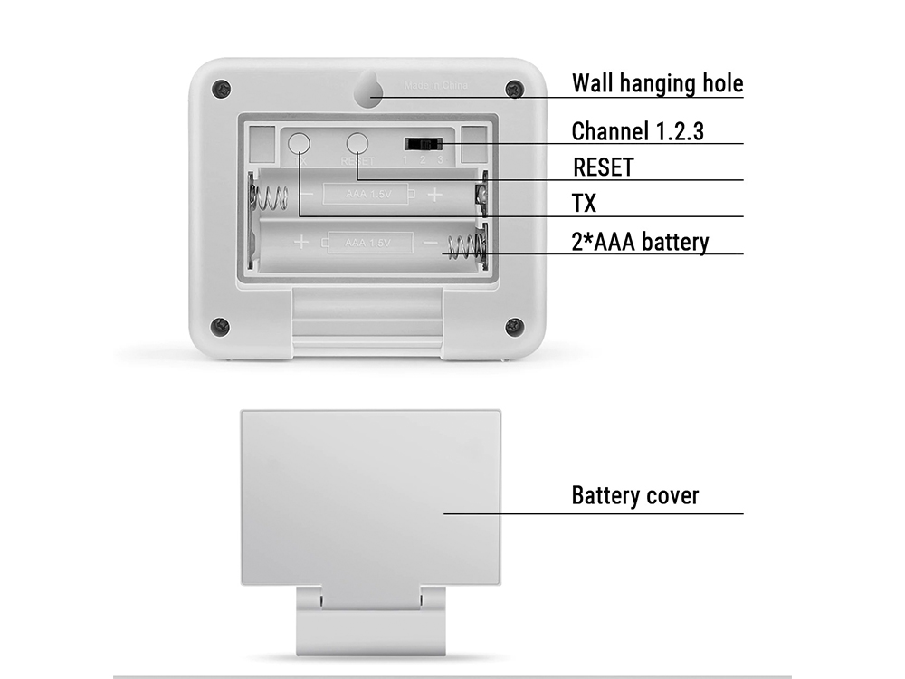 Живлення приладу від 2 батарейок типу ААА, харчування датчика від 2 батарейок типу ААА (не входять в комплект).