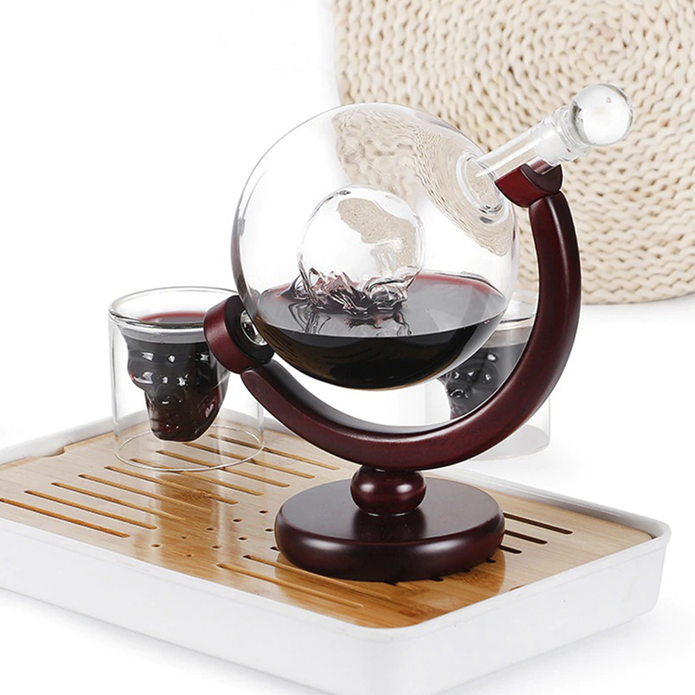 Декантер для вина алкогольних напоїв на дерев'яній підставці Штоф - це цікавий і ефектний штоф у вигляді кулі, що обертається на підставці, з Черепом всередині.