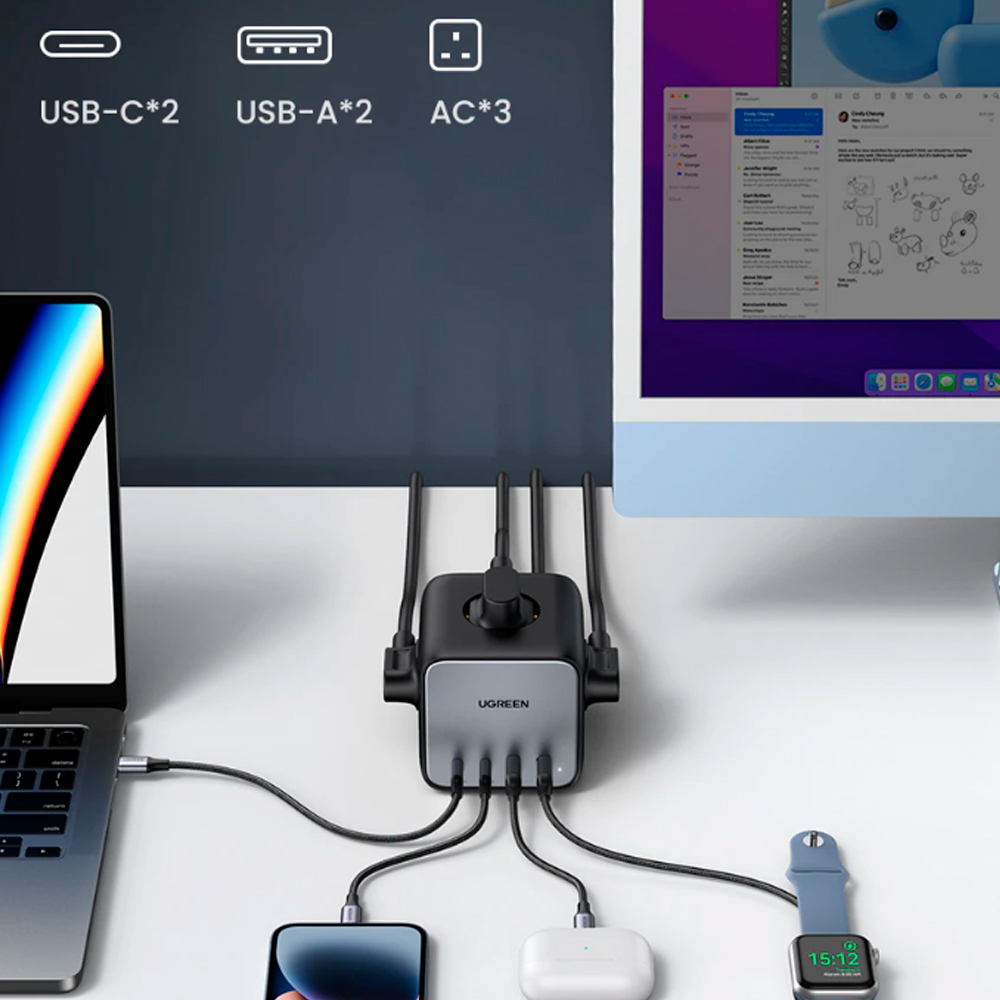 від USB-C на 65 Вт до розетки змінного струму на 3680 Вт. Розгалужувач Ugreen 65 Вт Diginest Cube 7 в 1 створений для реальної продуктивності.