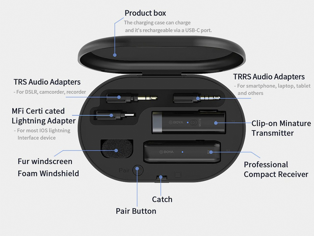 Мікрофонна система BY-WM3U 2.4 ГГц Lightning - завдяки цій мікрофонній системі 2.4 ГГц, Ви зможете записати звук та відео на смартфон, камеру, планшет чи ПК.
