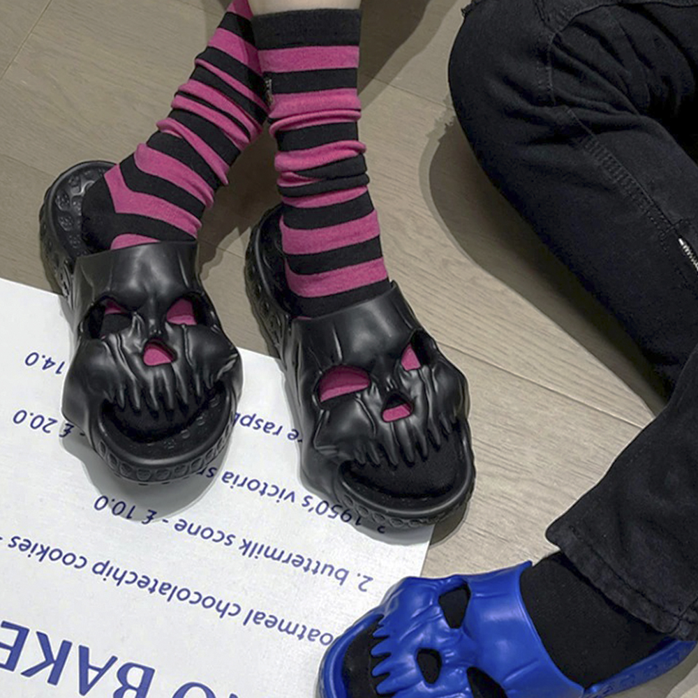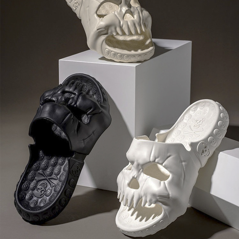 Шльопанці дуже оригінально виконані. Верх у формі черепа.