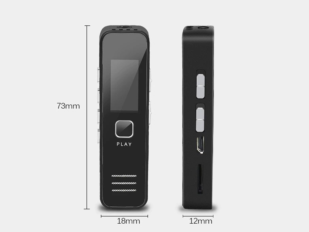 Розміри диктофона 7,3 см х 1,8 см х 1,2 см і він легко поміститися в сумці.