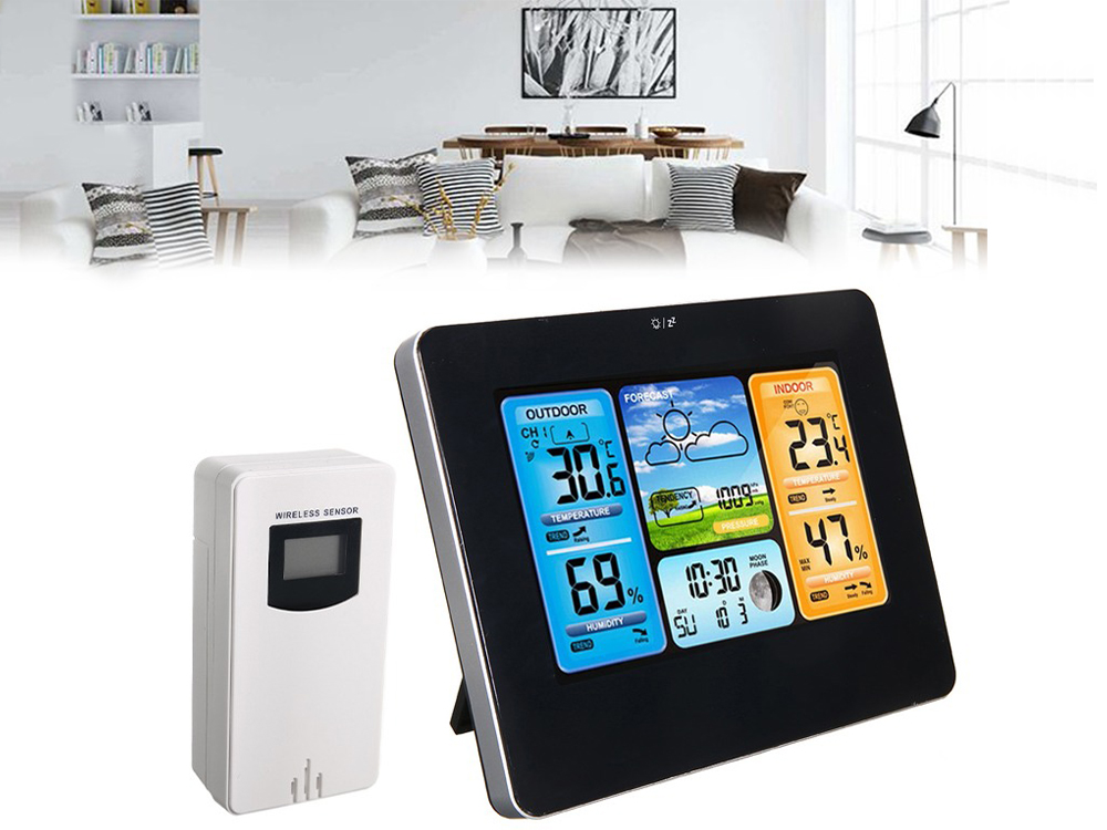 Метеостанція FanJu FJ3373 з гігрометром термометром і барометром цифрова - це відмінна метеостанція з великим кольоровим дисплеєм 5,7 дюймів.