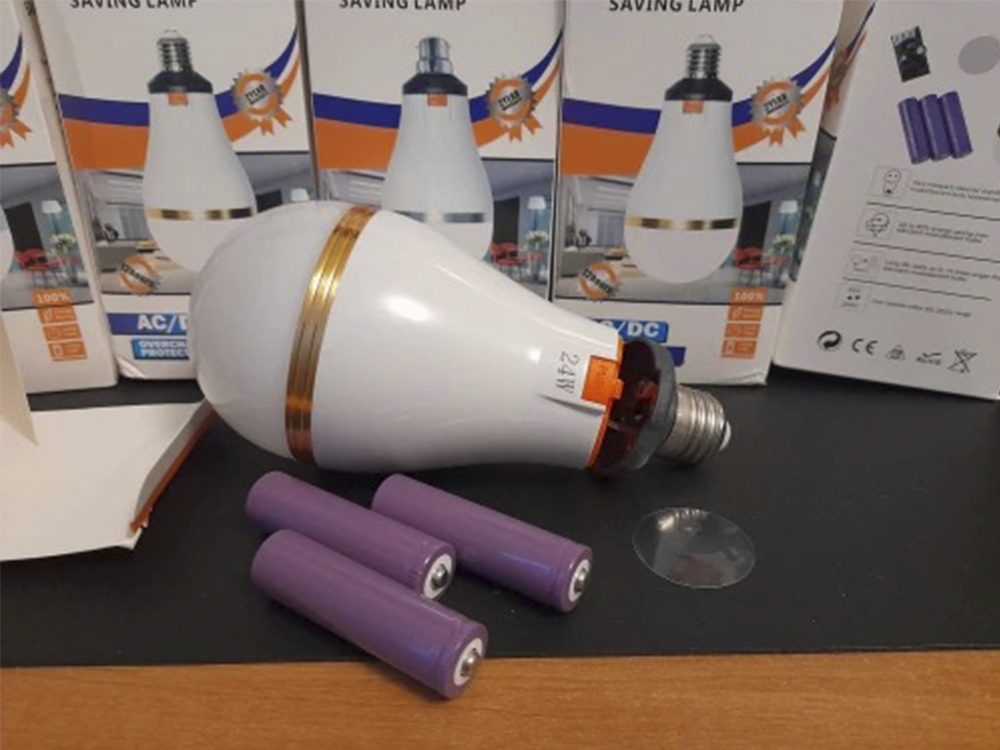 - Лампа світлодіодна на акумуляторах 18650 25W