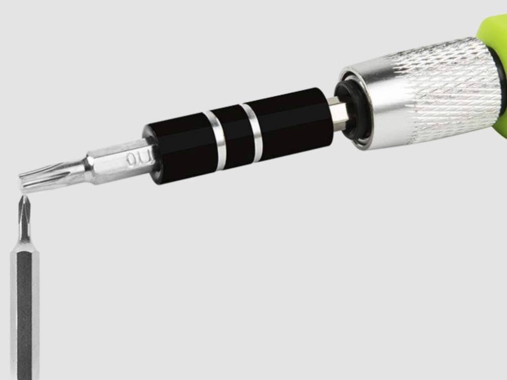 Разом з викруткою йде 30 біт, подовжувач та пластиковий кейс для зручності зберігання та перенесення.